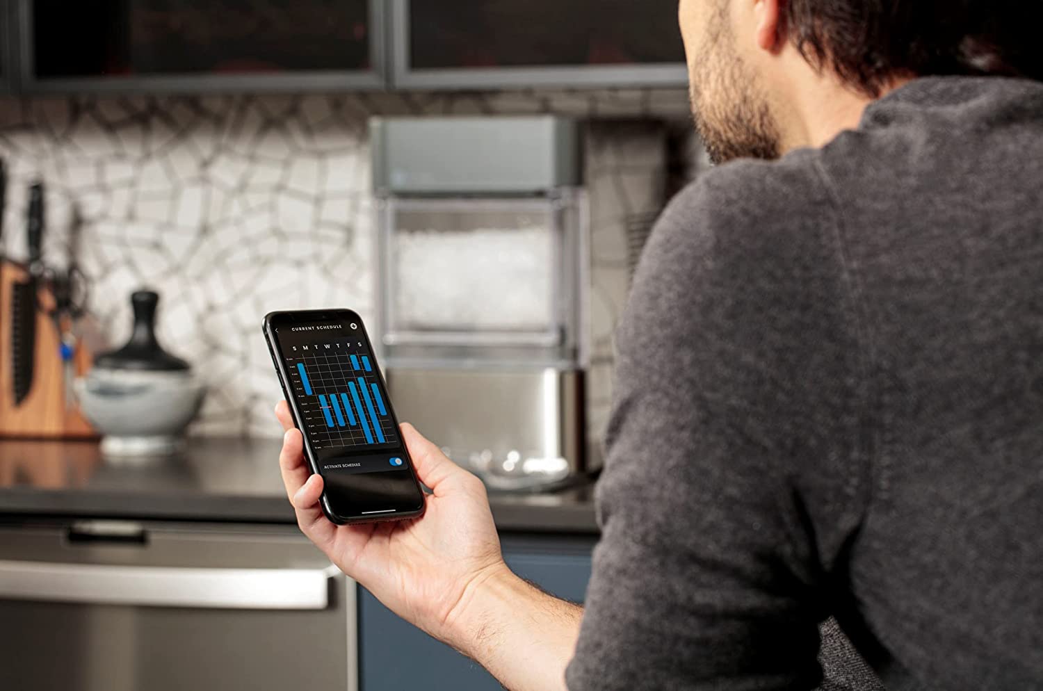 A smart automatic refill system circulates melted ice back into the reservoir, helping reduce waste and ensuring a fresh supply. The touch-style LED display provides simple control over operation and status at a glance. Some versions of this unit can be paired with a companion mobile app for remote monitoring and scheduling, depending on configuration.